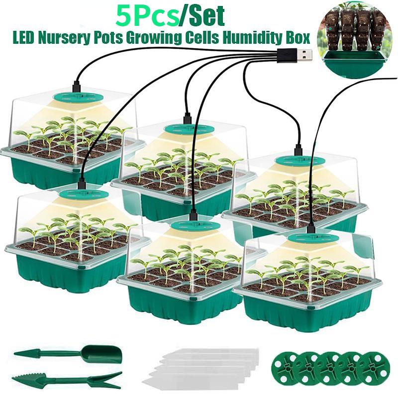 5 шт., 2 шт., 1 шт./набор лотков для выращивания растений, светодиодные светильники, горшки для рассады, ячейки для выращивания, ящик для поддержания влажности, теплица