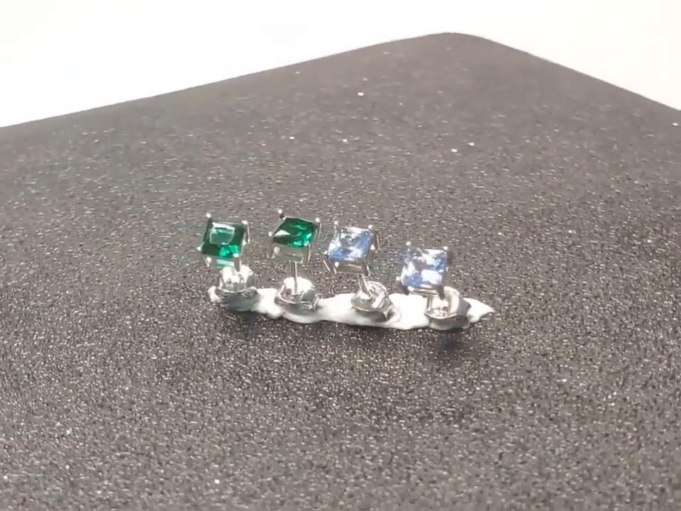 Квадратные серьги-гвоздики из серебра 925 пробы с синим, красным и зеленым цветом и фианитами — купить товар онлайн с бесплатной доставкой по всему миру!