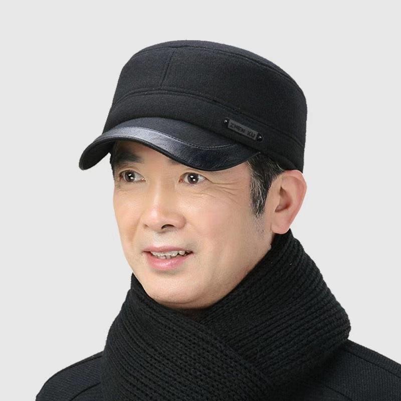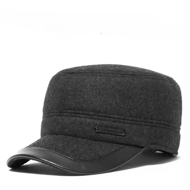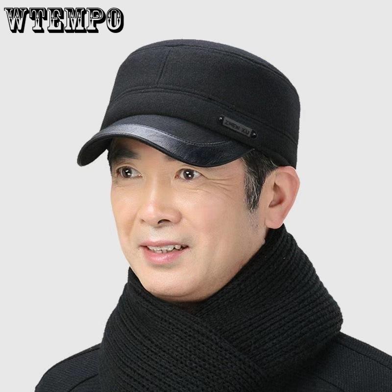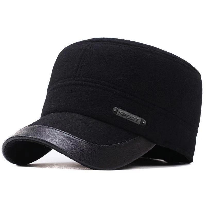 Мужская зимняя шапка для людей среднего и пожилого возраста, плюшевая шляпа с плоским верхом и плюшевой защитой ушей