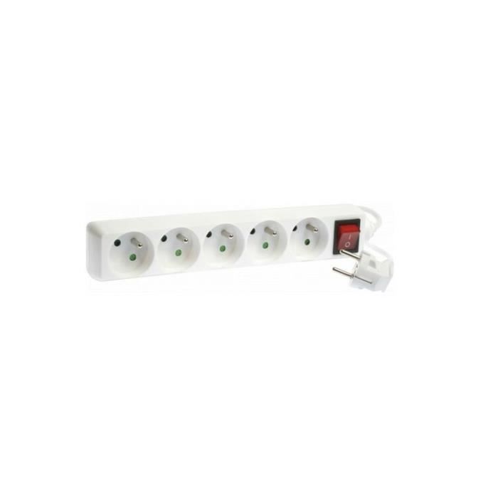 Multiprise - Bloc multiprise - 5 prises - Interrupteur - 1 m - Blanc