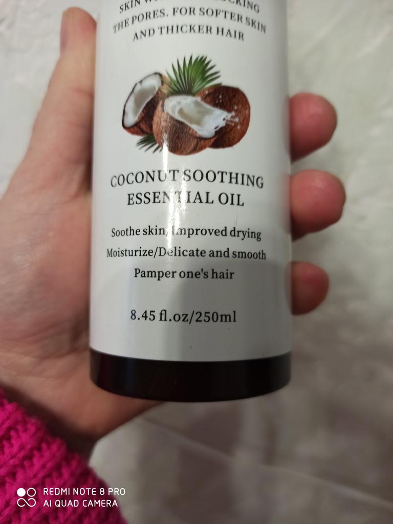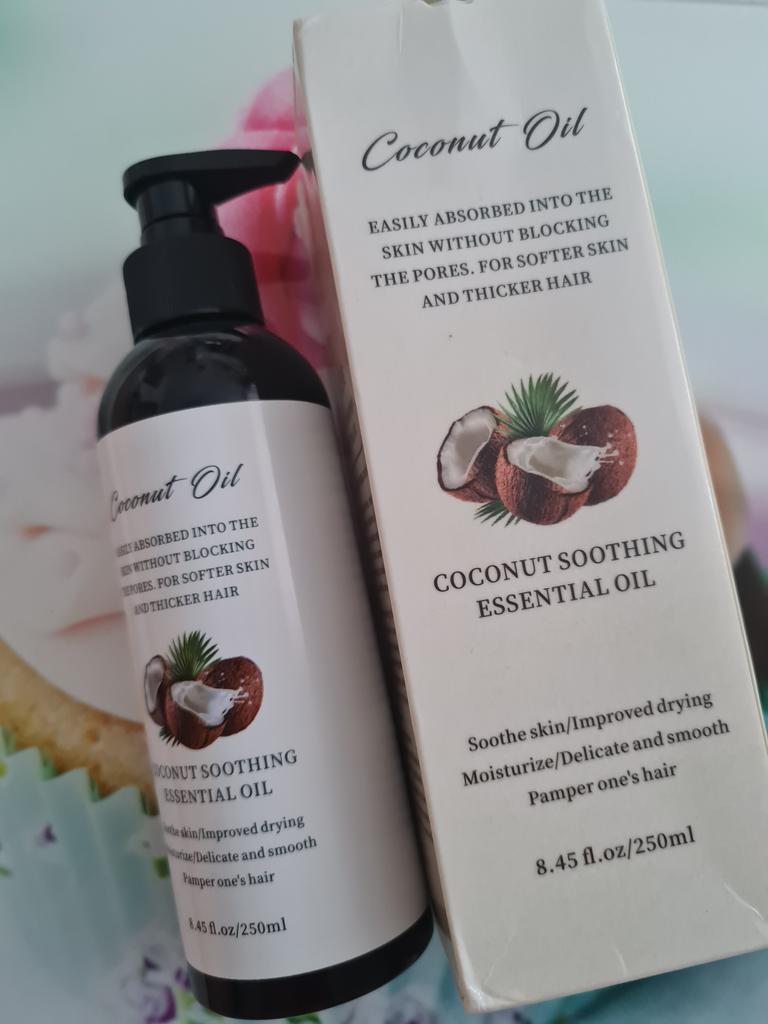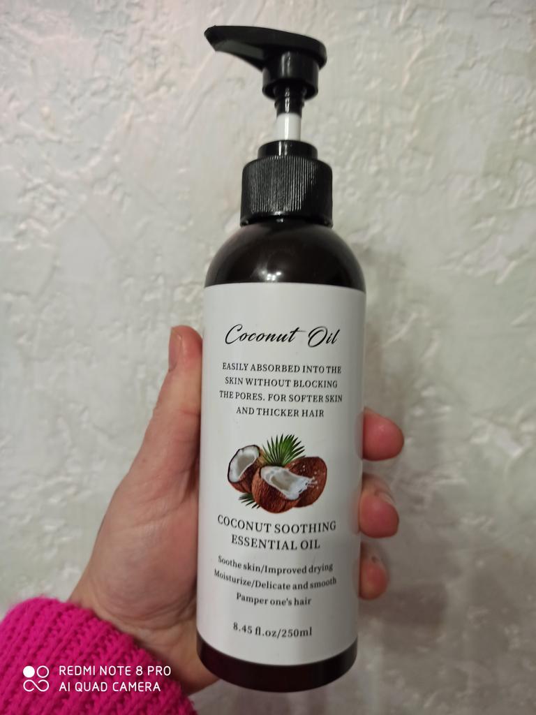 Массажное кокосовое масло 🥥 Масло косметическое для массажа. В удобном флаконе с дозатором. Кто знаком с кокосовым маслом, знает о его питательных свойствах. Хорошо ухаживает и питает кожу тела лица и губ. Поскольку недавно у нас, (как и везде в России) внезапная началась настоящая зима🌨️ масло прибыло очень кстати. Для зимнего ухода за кожей и губами масло кокоса это самое то.🥥 Я делаю также маски для волос. Аромат вкусный и уютный) Флакон 250 мл. В пути коробка слегка промокла, но объём особо не пострадал. Если открыть крышку, видно, что масло внутри густое. Но при нажатии масло из дозатора полужидкое, будто растопленное. Хорошо впитывается и распределяется. В подарок пришел бальзам для губ с вазелином.💫