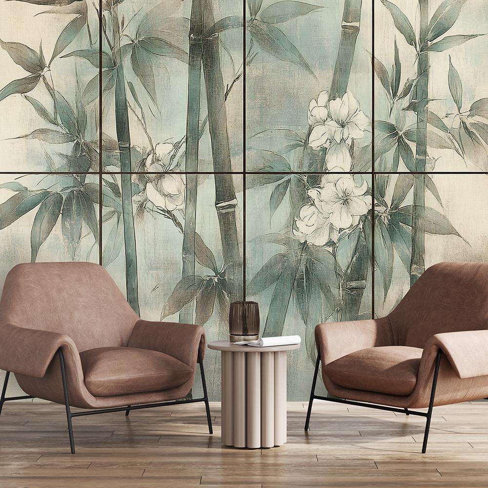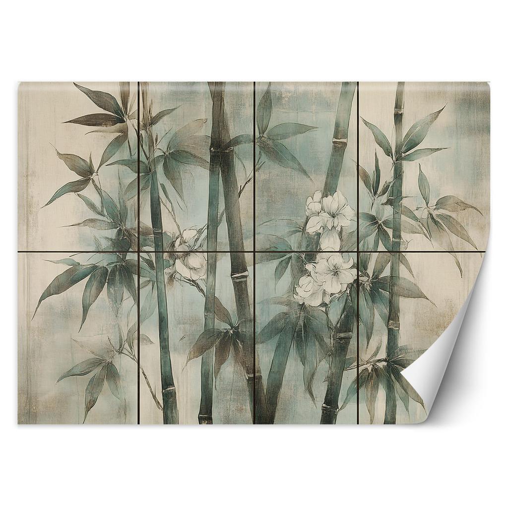 Wallpaper bamboo shoots with flowers on textured background… Ещё