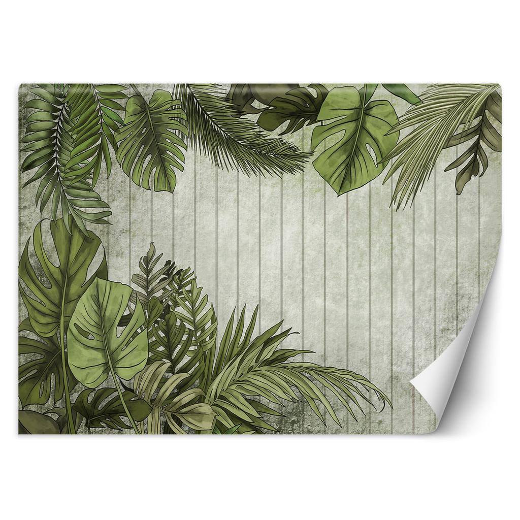Wallpaper Exotic leaves on a background of boards — купить товар онлайн с бесплатной доставкой по всему миру!