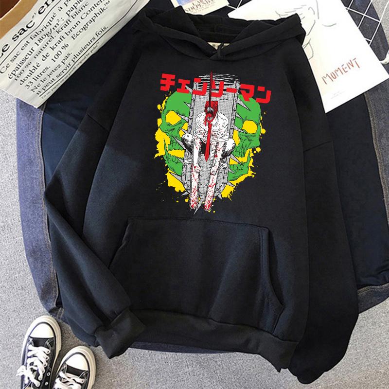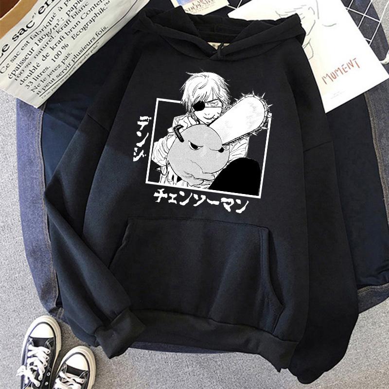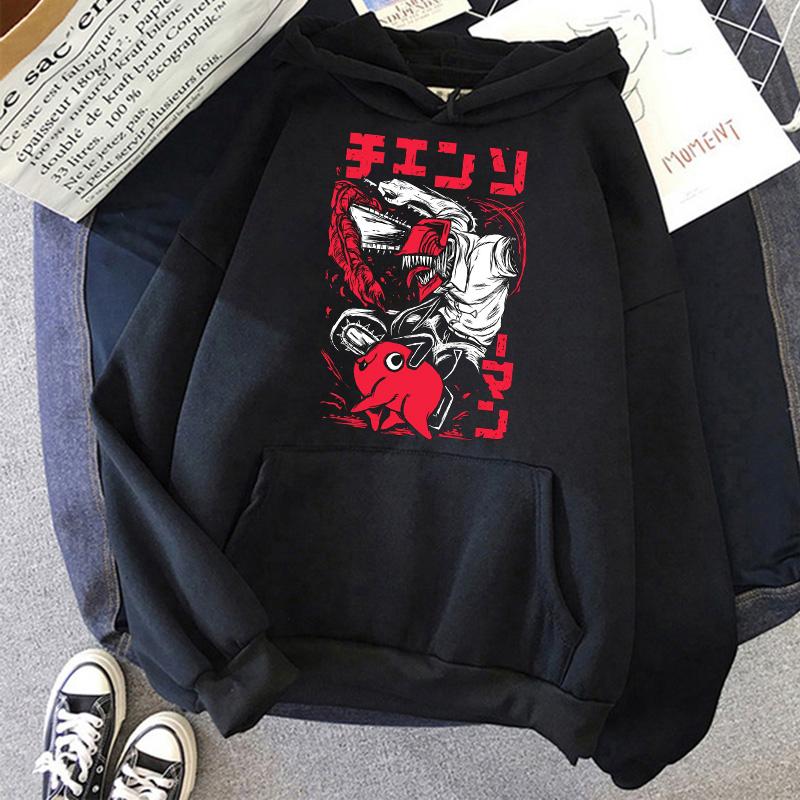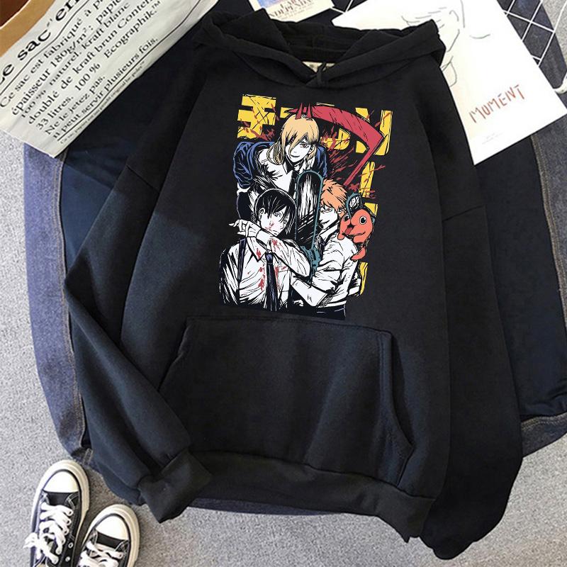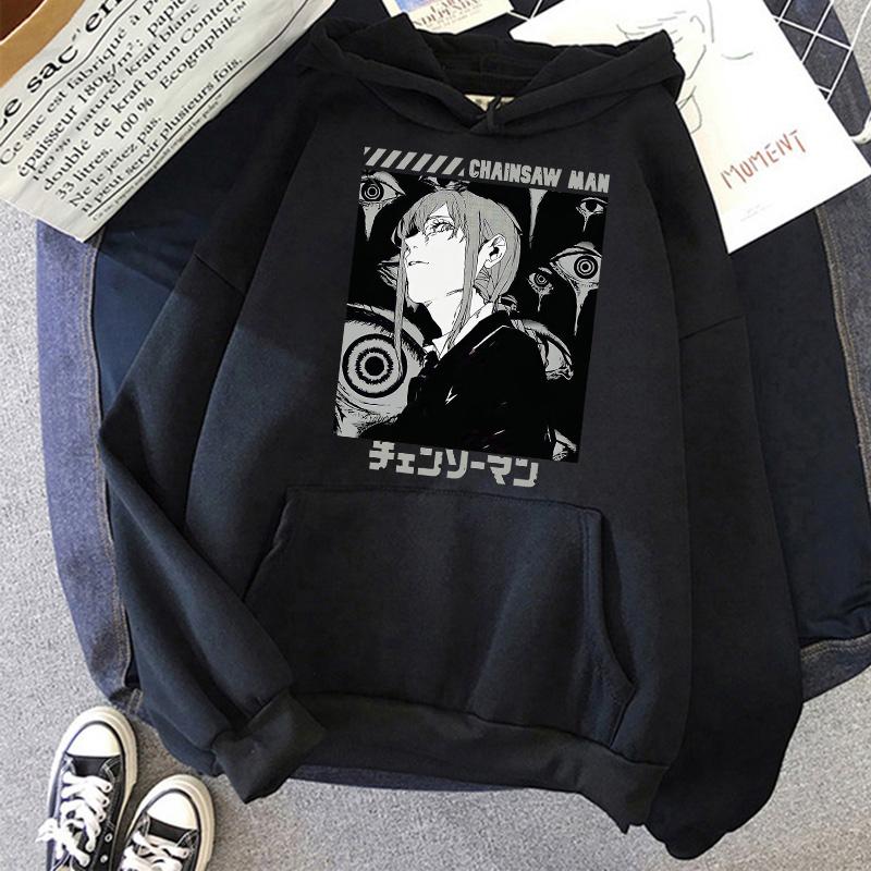 Chainsaw Man Anime Женские толстовки с капюшоном Большие размеры Толстовка Harajuku Женский длинный рукав Пуловер Повседневная уличная одежда Топы