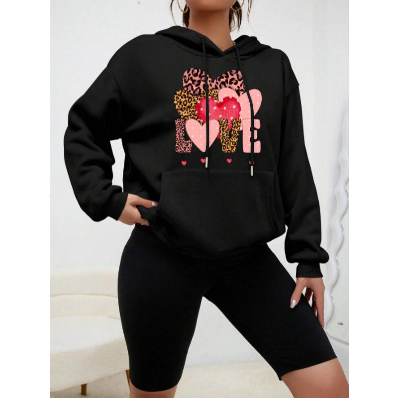 Леопардовый принт Любовь Креативное сочетание Дизайн Женская уличная одежда Индивидуальность Флисовая толстовка с капюшоном Креативность Модная одежда Новый пуловер