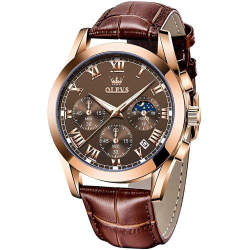 Мужские часы OLEVS, Легкие, Наручные часы, Водонепроницаемые, Для мужчин - Аналоговые кварцевые, Легкие часы, Коричневые, Дата для джентльмена, День недели, Хронограф, Коричневые