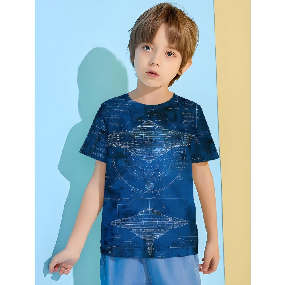 Костюм с изображением космического корабля Футболка для мальчика Одежда для мальчиков Верхняя одежда для детей Топы