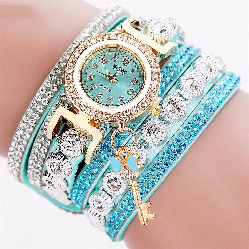 Горячая Распродажа Персонализированные Браслет Часы Круглые Наручные Часы Модные Новые Dtyle Алмазная Инкрустация Ключ Подвеска Часы Женские