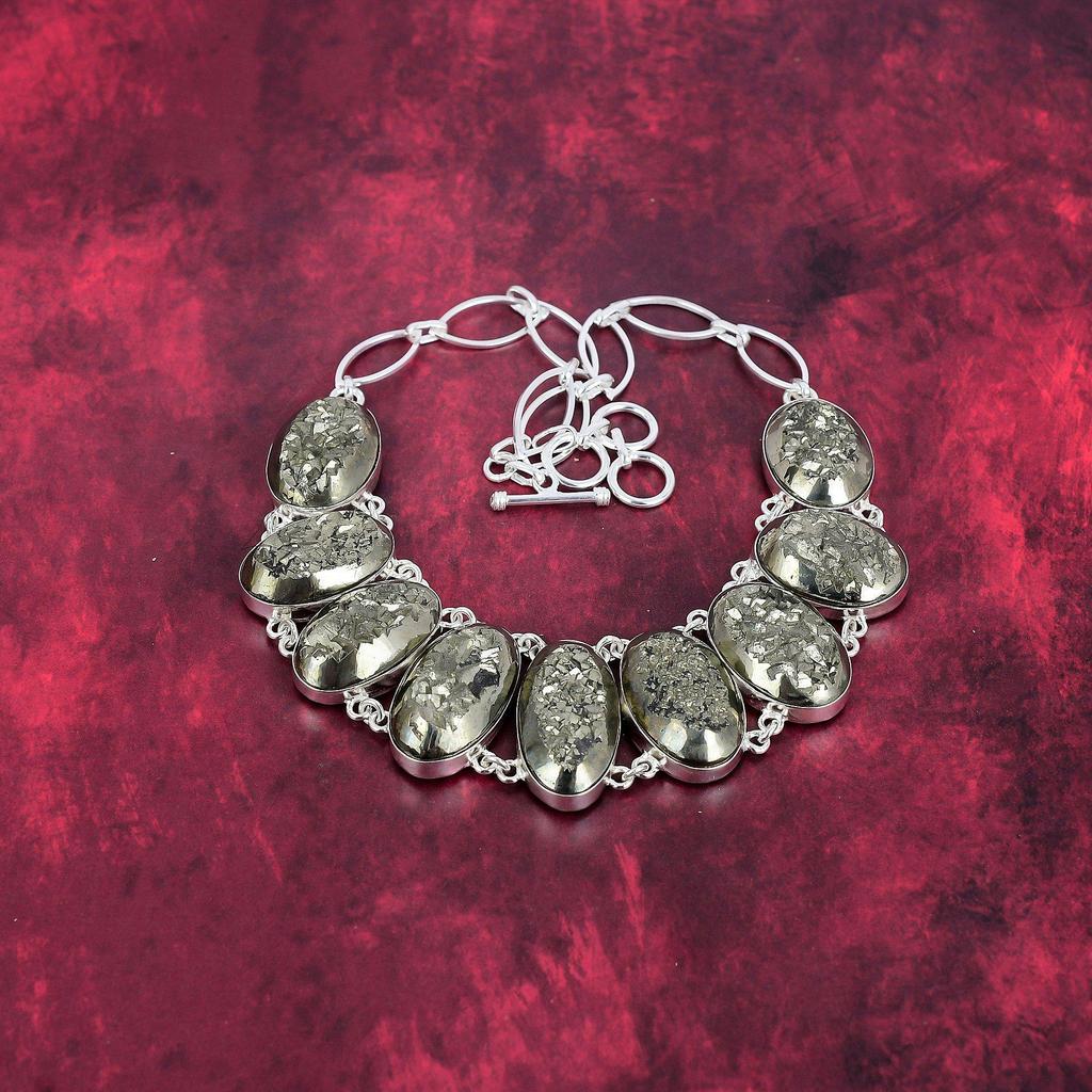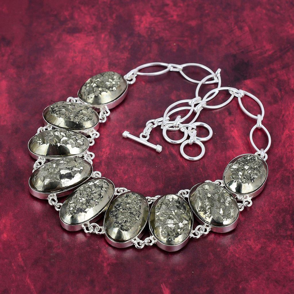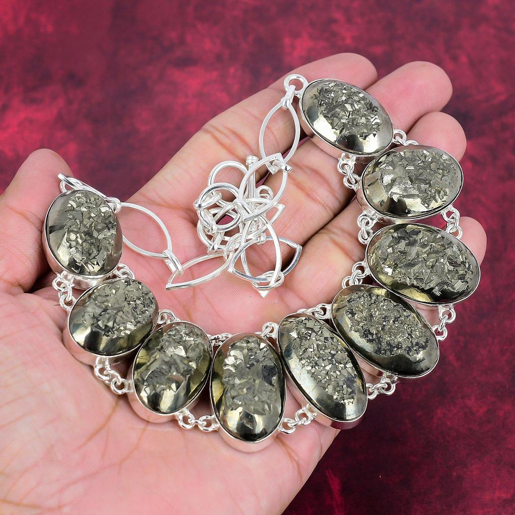 Ожерелье с золотым пиритом и друзами, ювелирные изделия из драгоценных камней, ожерелье ручной работы из цельного серебра 925 пробы, ювелирные изделия последнего дизайна