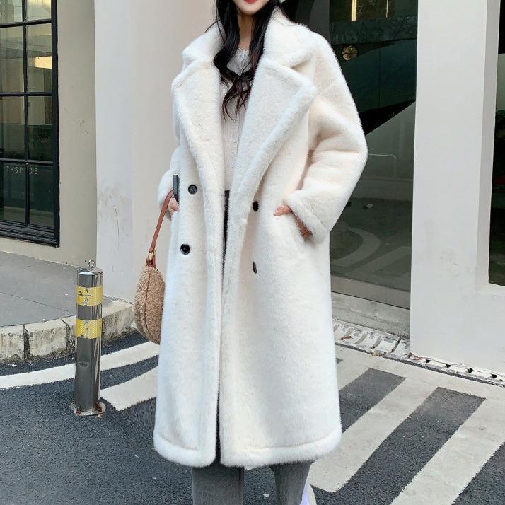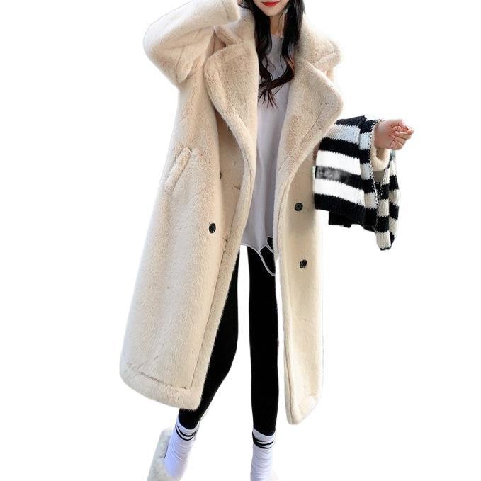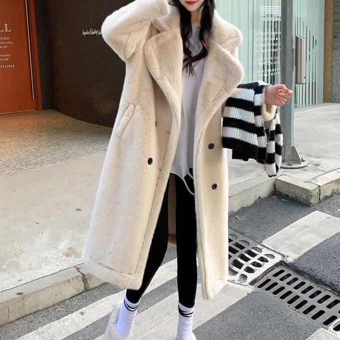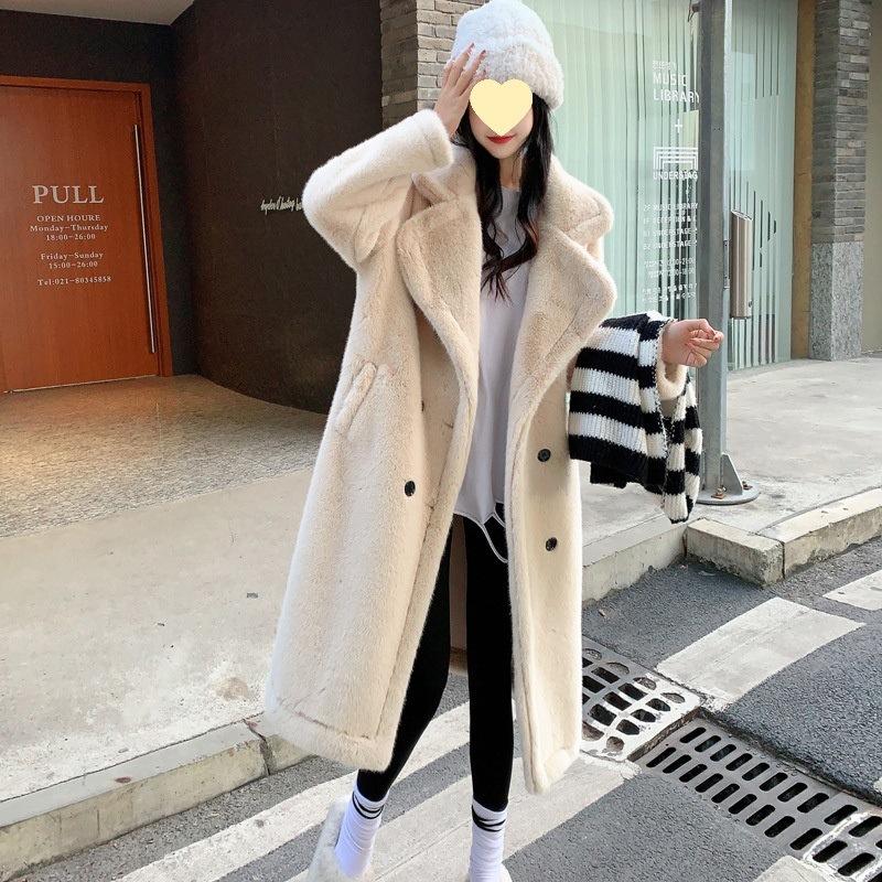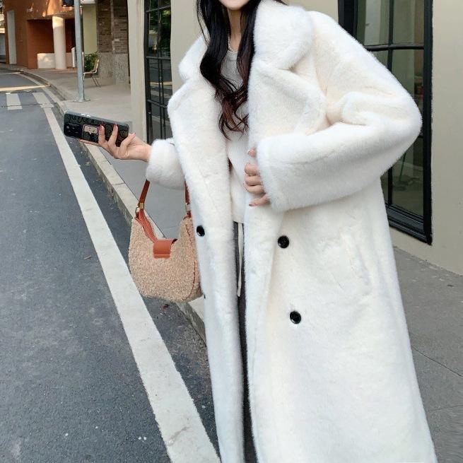 2024 осень-зима утолщенный длинный костюм воротник имитация норки флис мех интегрированный мех экологически чистый мех женское пальто пальто