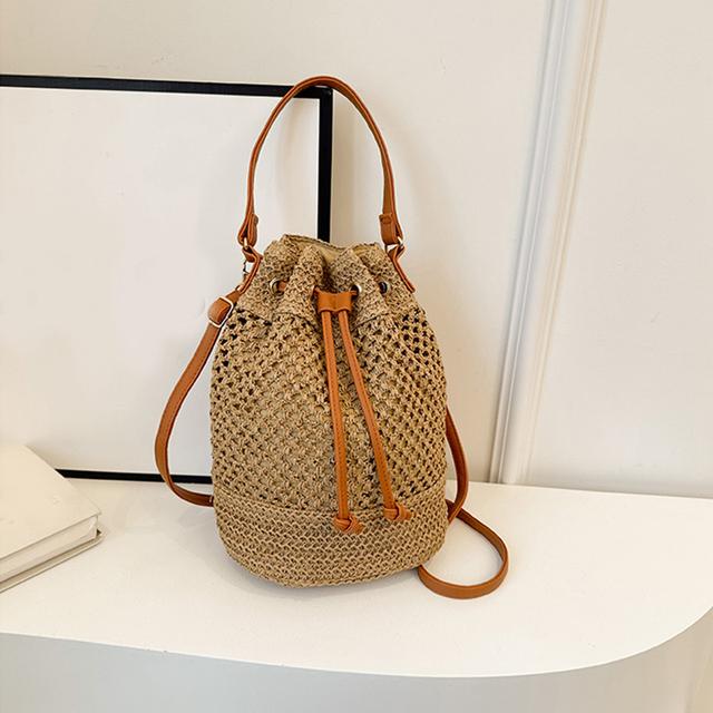 Женская плетеная сумка ручной работы, соломенная сумка-ведро, сумка через плечо с завязками, пляжная сумка из ротанга для девушек