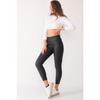 Черные кожаные леггинсы с завышенной талией и гипюром — купить товар онлайн с бесплатной доставкой до всему миру!
