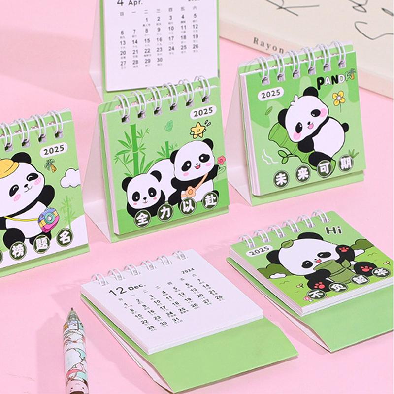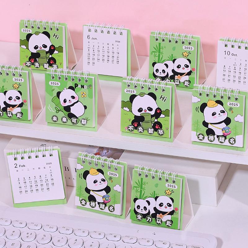 Мини-мультяшный настольный календарь 2025 года с милыми пандами и животными, портативный карманный календарь, управление расписанием, украшение рабочего стола