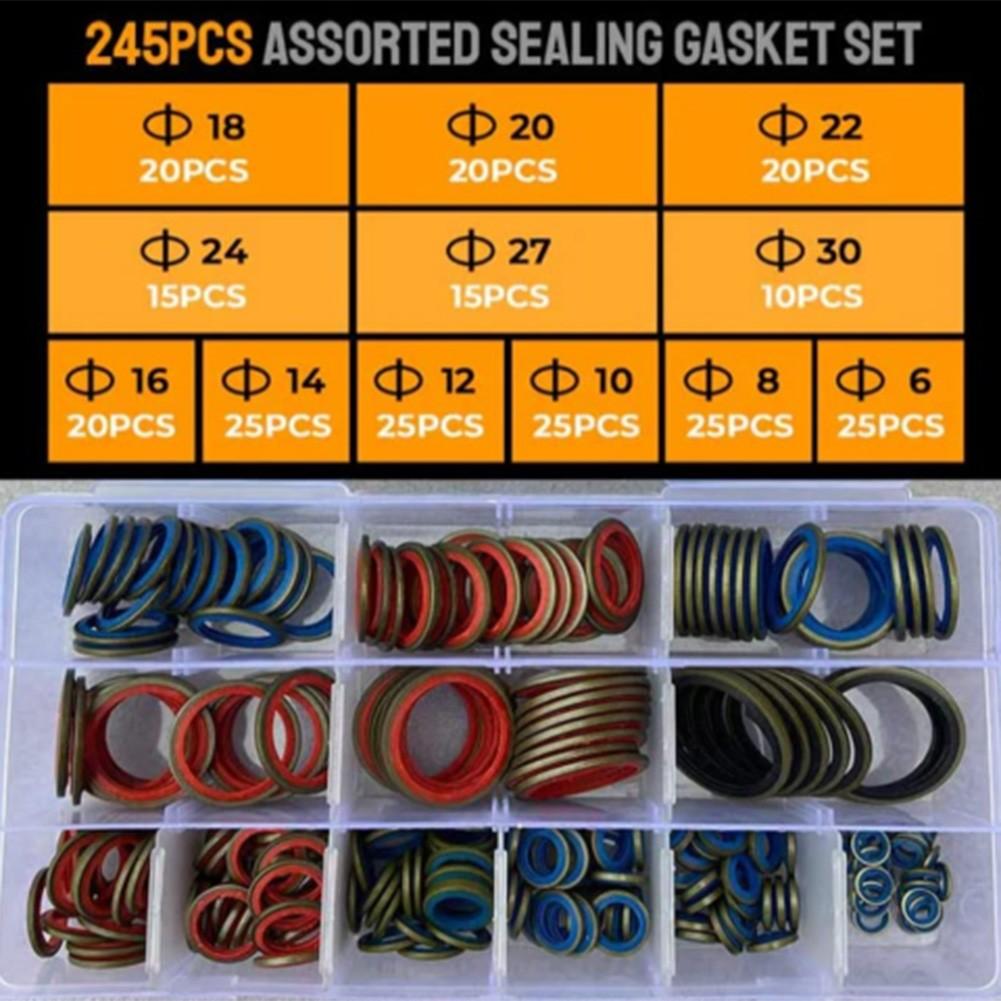 100 шт./ 245 шт. Ассортимент уплотнительных прокладок, резиновая комбинированная прокладка, ремонтная коробка