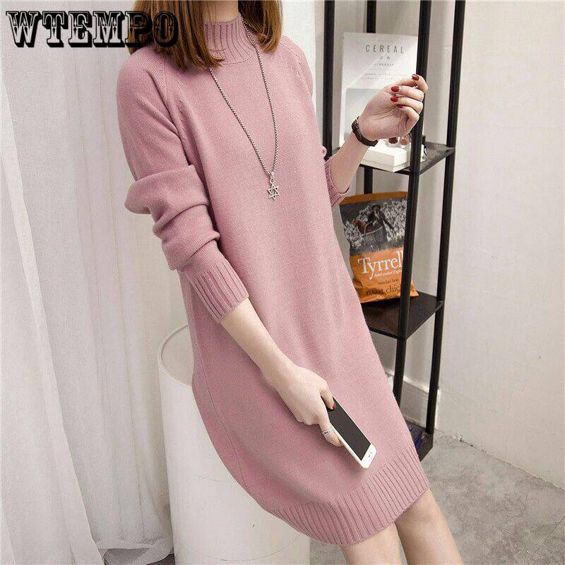 Свитер женское платье средней длины осень-зима корейская версия свободного хеджирования длинное модное платье-свитер женское