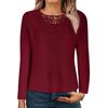 Однотонная футболка с круглым вырезом и вырезом, элегантная ребристая футболка с длинным рукавом и контрастным кружевом для осенне-зимней женской одежды