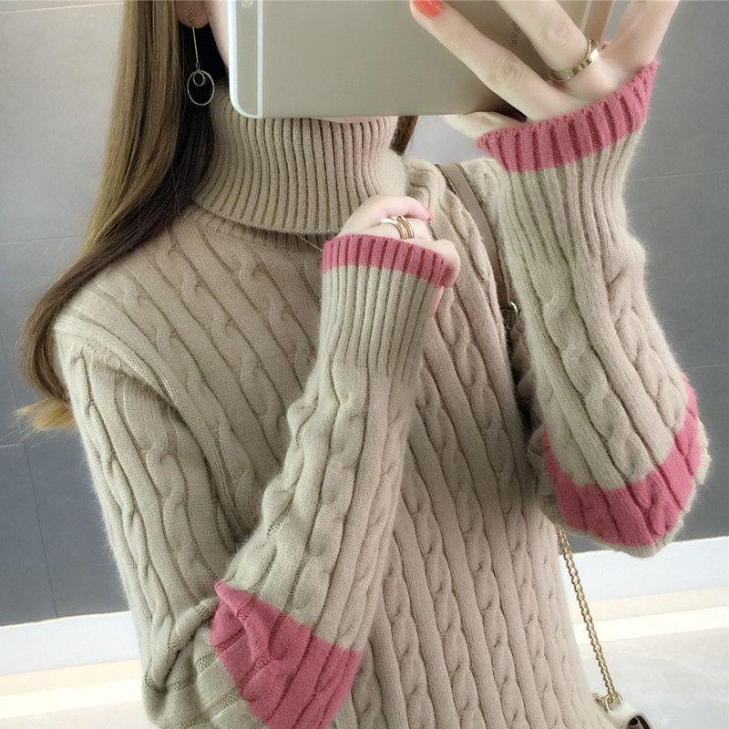 Толстый и теплый свитер с высоким воротником для женщин, свободный базовый вязаный свитер для осени и зимы