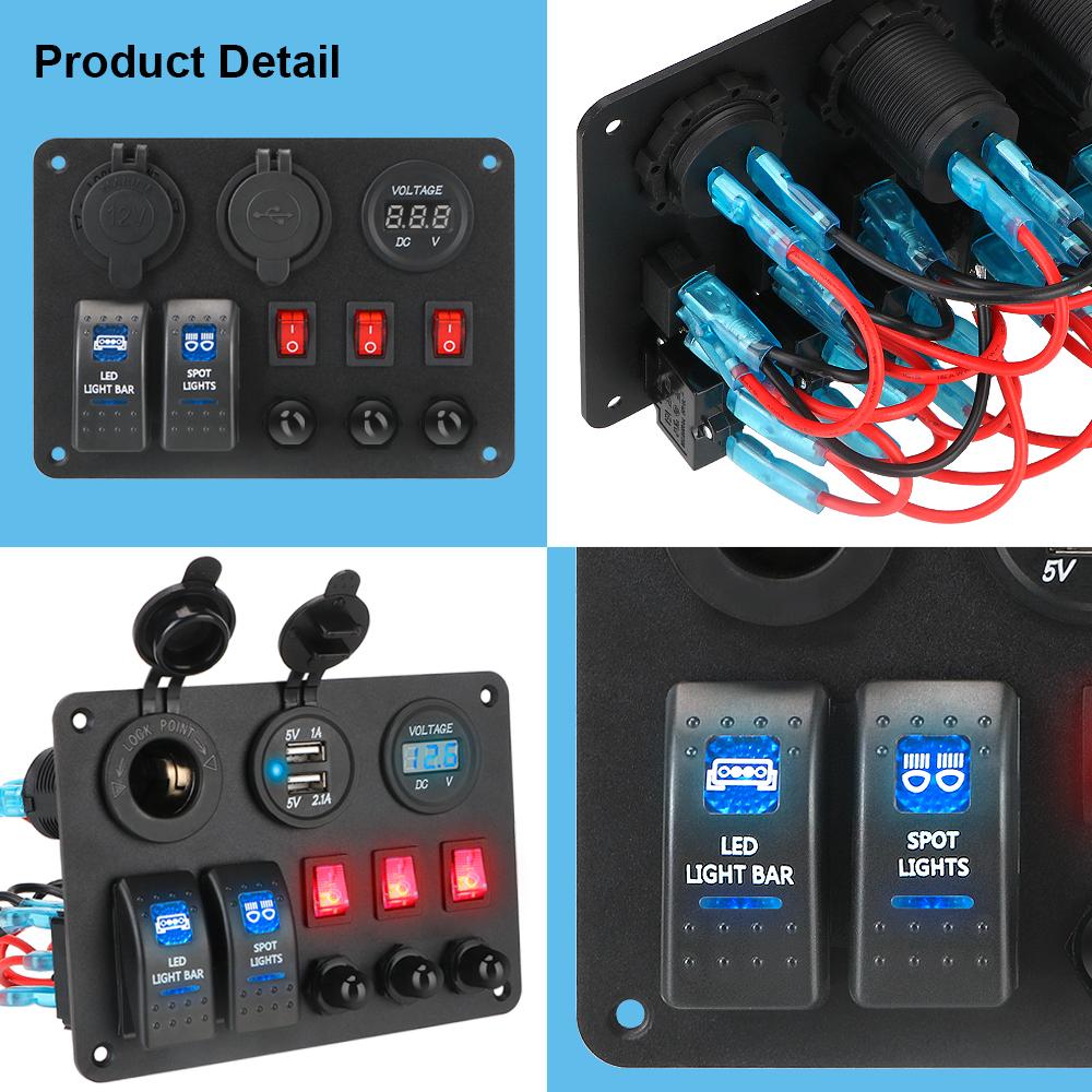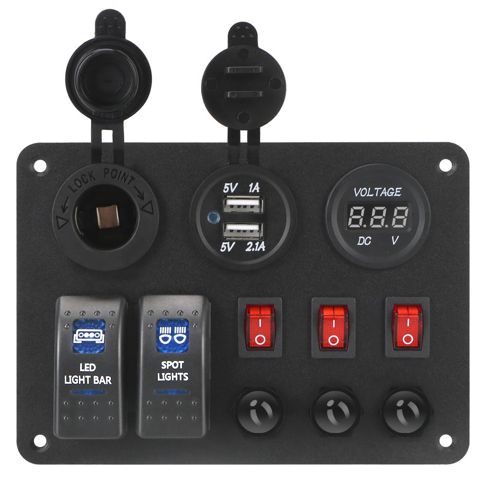 Цифровой вольтметр для автомобиля, морского автофургона, светодиодный выключатель с защитой от перегрузки, 2+3-клавишная панель с двумя портами USB