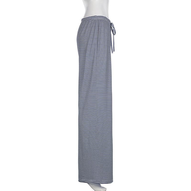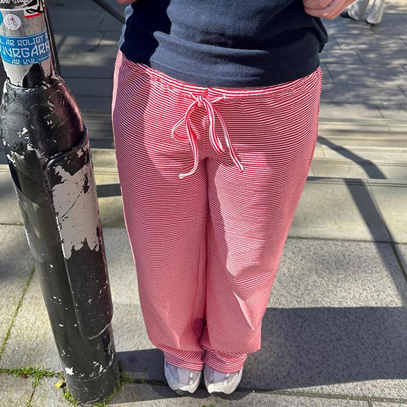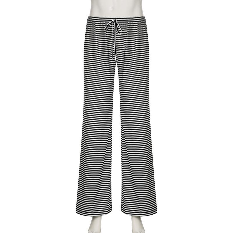Полосатые эластичные спортивные брюки с завязками на талии, женские повседневные свободные прямые брюки для отдыха, мешковатые уличные брюки