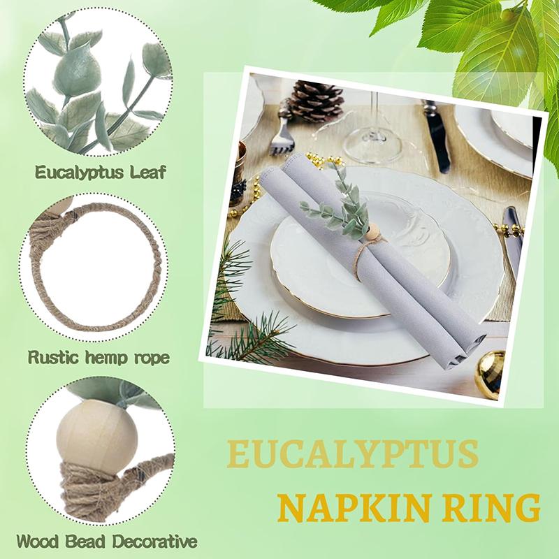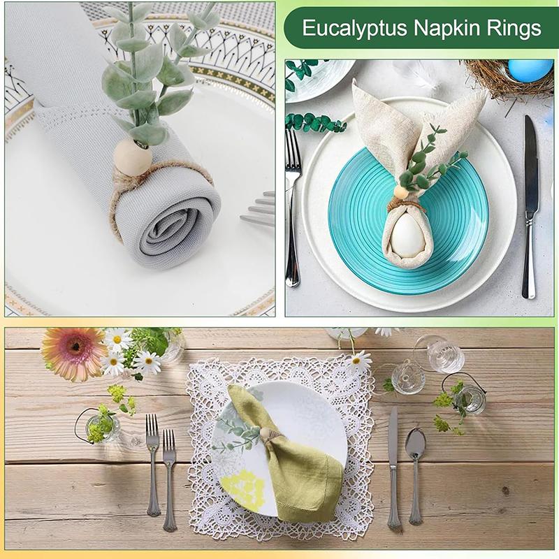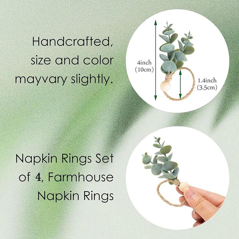 4 шт. Кольца из листьев эвкалипта, деревянные бусины, фермерские кольца для салфеток, для обеда, банкета, свадьбы, Рождества, Пасхи, праздничного украшения стола