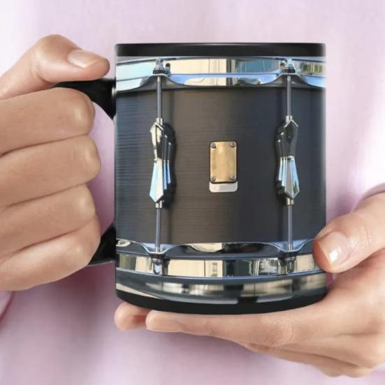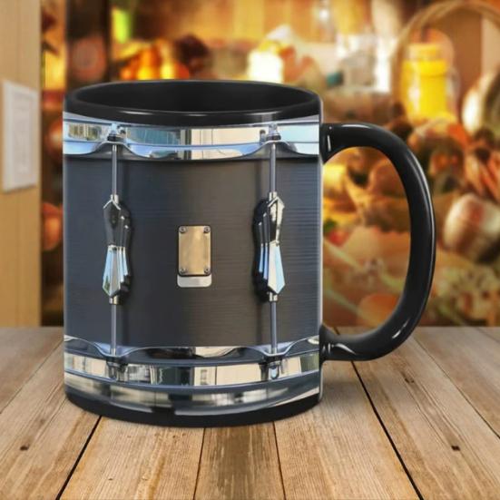 Уникальный дизайн барабанной установки: Выделитесь с нашей кофейной кружкой с винтажным дизайном в виде черной барабанной установки, которая идеально подойдет барабанщикам и любителям музыки.. Эта уникальная эстетика превращает ваш утренний напиток в праздник ритма и мелодии, делая его темой для разговора среди любителей музыки.