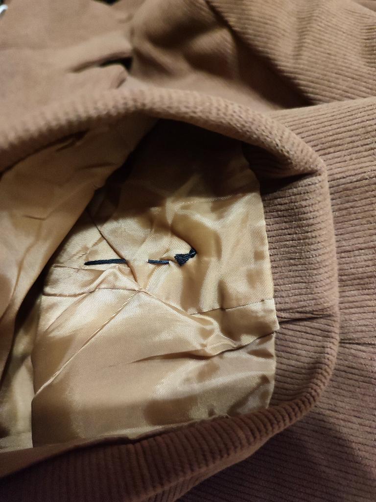 Пиджак так себе. Это не фабричное изделие, кустарщина. Нет никаких вшитых изнутри меток. На трёх последних фото видно, как безобразно пришиты пуговицы и на самом пиджаке, и на рукавах. Кроме того, ОГ в размере XXL не 124 см, а 120. И цвет не такой приятный коричневый, как на промофото, а светлее, слегка в рыжину уходит. Не люблю такой оттенок коричневого.