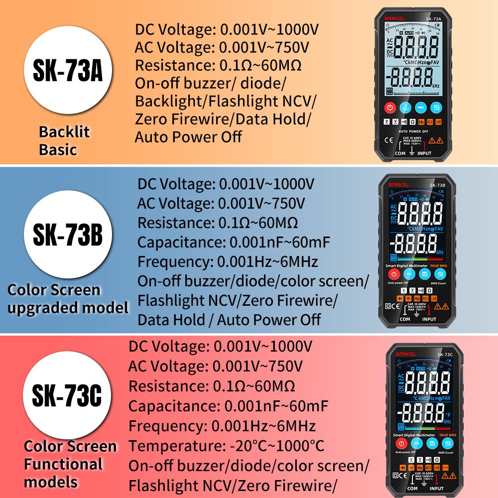 Snakol SK73C Мини Цифровой Мультиметр Умный Тестер Электрика Для Постоянного/Переменного Напряжения Емкости Ом Гц NCV Профессиональный Мультитестер