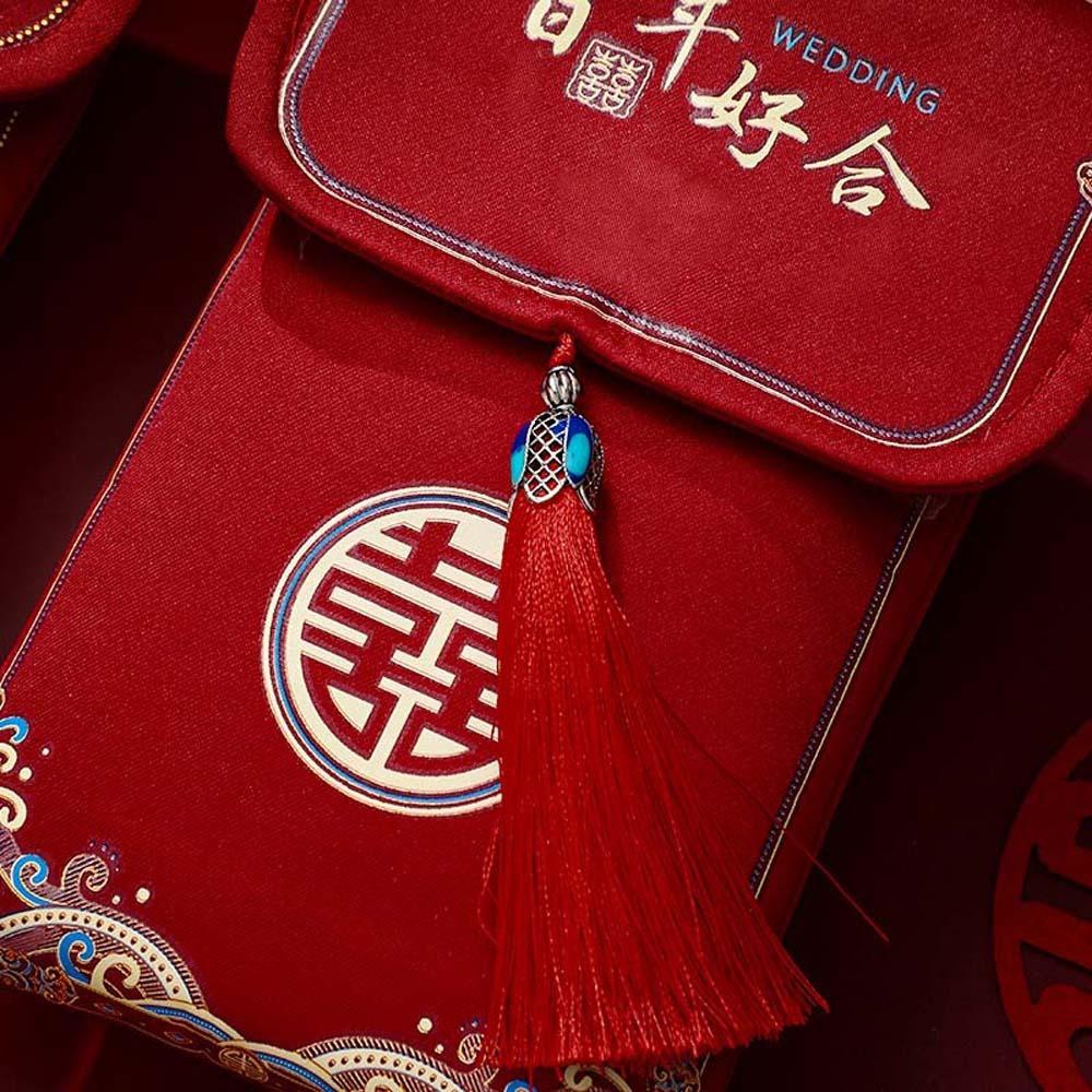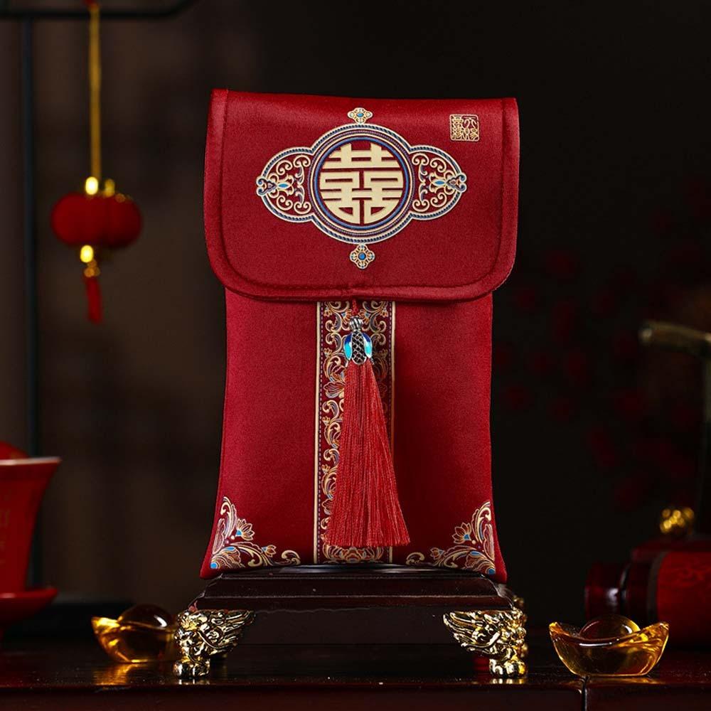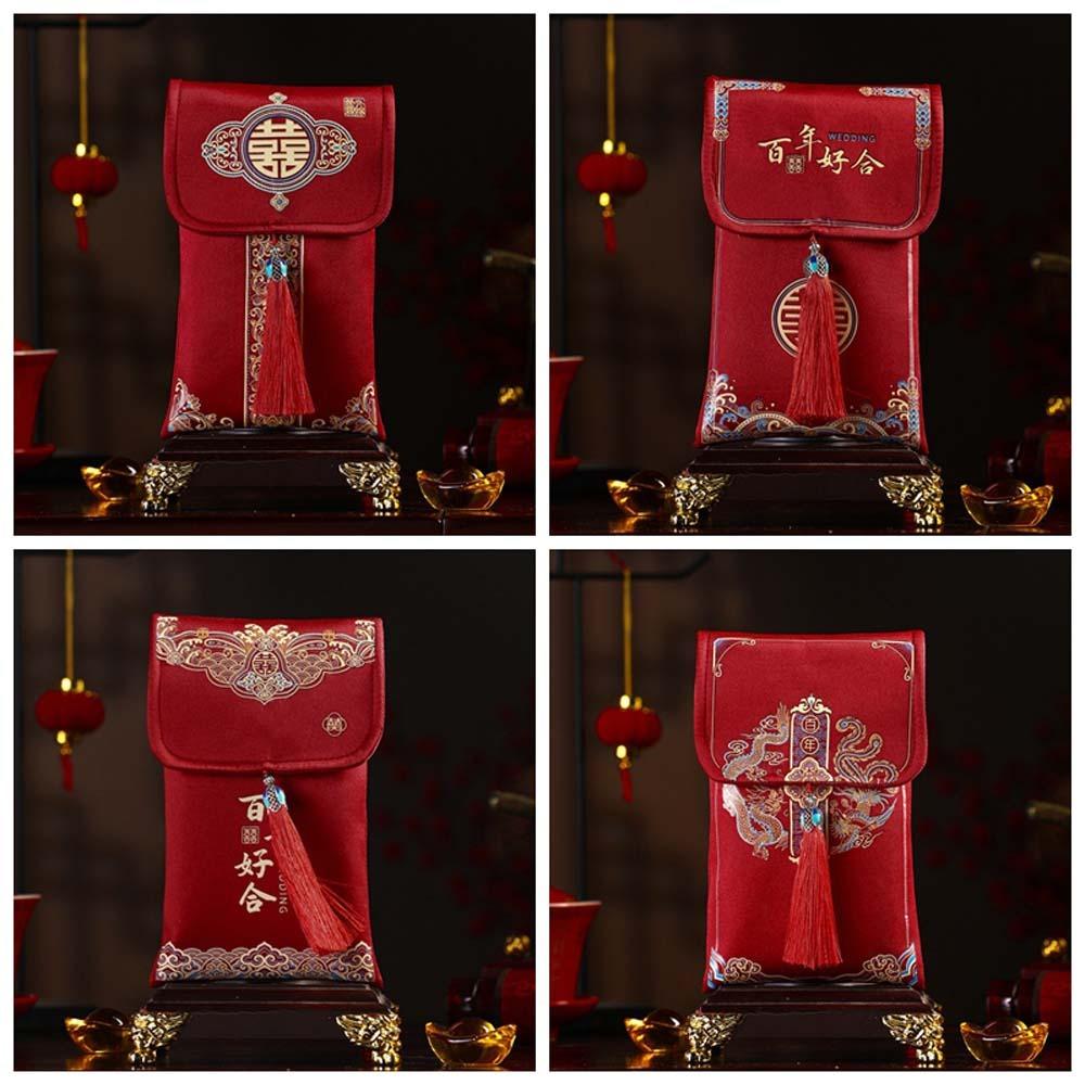 Новогодние благословения, парчовый красный конверт, наилучшие пожелания, весенний праздник 2025, карман для денег, парчовая ткань HongBao, кисточка