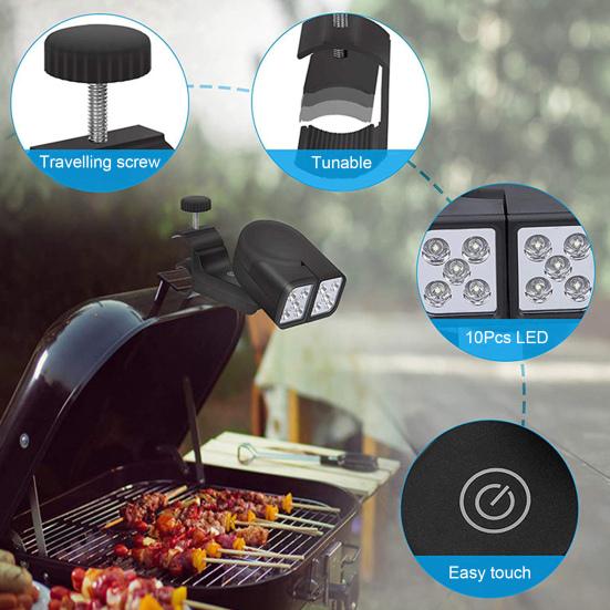 Осветите готовку на открытом воздухе с помощью универсального освещения. Этот переносной светильник для гриля подойдет не только для барбекю.; идеально подходит для кемпинга, езды на велосипеде, чтения и многого другого. Этот светильник для гриля оснащен 10 сверхъяркими светодиодами и обеспечивает длительное освещение, не беспокоясь о сроке службы лампочек.