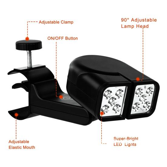 Регулируемая угловая конструкция с двумя головками ламп позволяет поворачивать светильник на 180 градусов вверх и вниз и на 90 градусов влево и вправо, обеспечивая удобное освещение в различных зонах.. Этот водонепроницаемый светильник для гриля, изготовленный из термостойкого алюминиевого сплава, выдерживает высокие температуры и дождливую погоду, что делает его идеальным для использования на открытом воздухе.