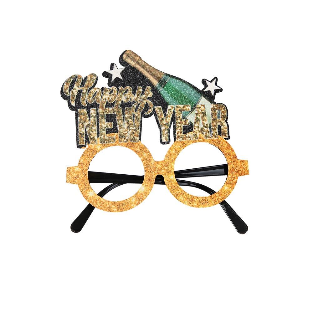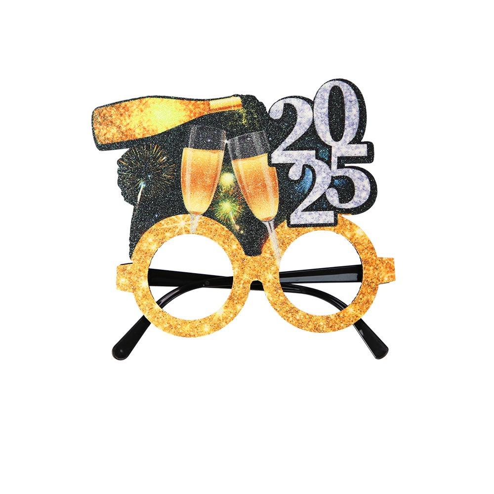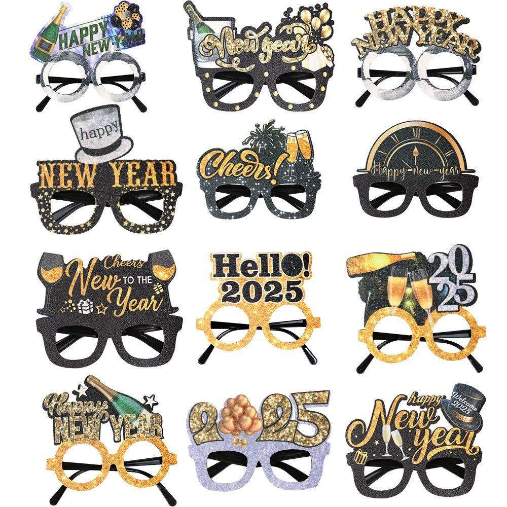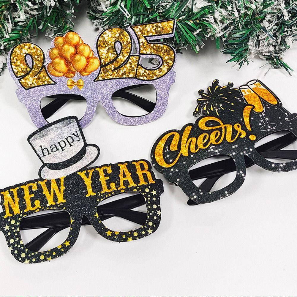 4 шт. Мультфильм 2025 Новогодняя оправа для очков Смешные Изысканные Черно-Золотые очки Блестки Звезда Цветная полоса Оправа для очков