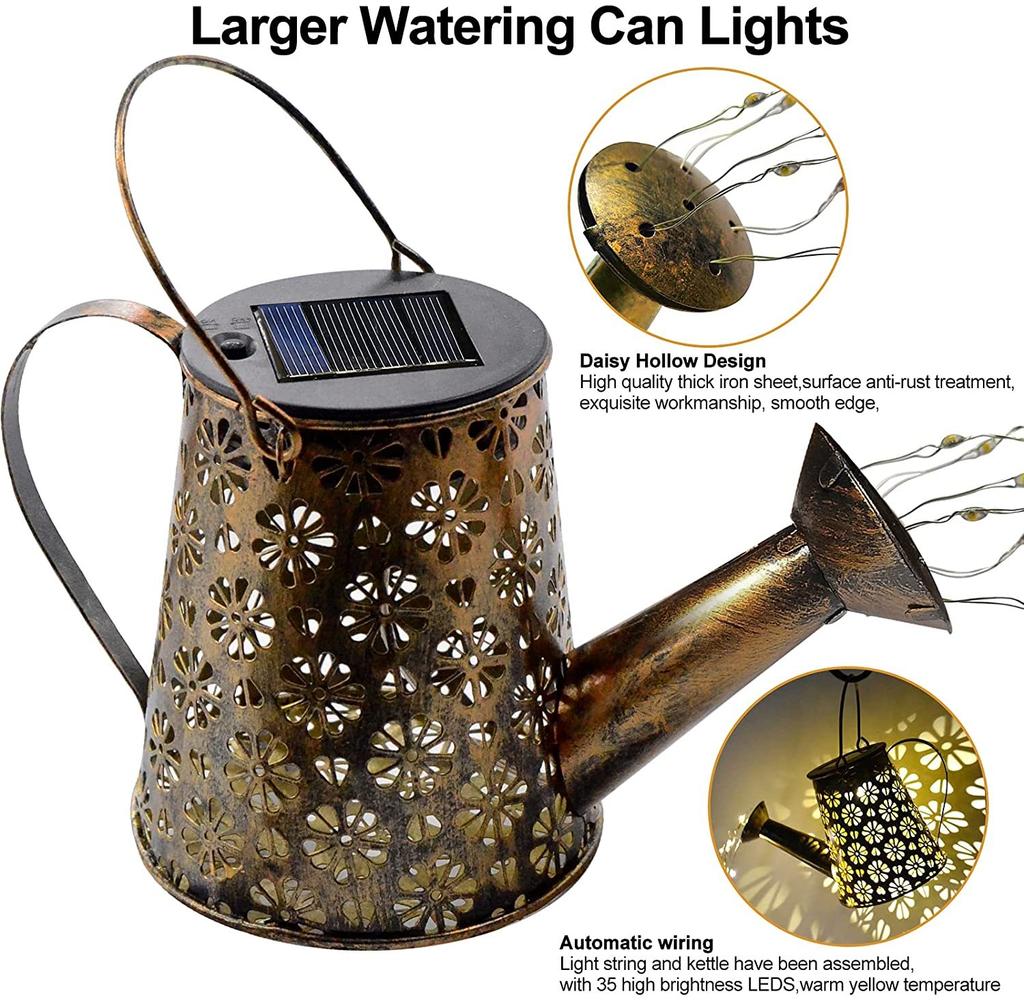 Светодиодный солнечный светильник для сада, водонепроницаемый, ретро, металлический, подвесной, поливочный, солнечный светильник, гирлянда для стола, патио, двора, дорожки, дорожки