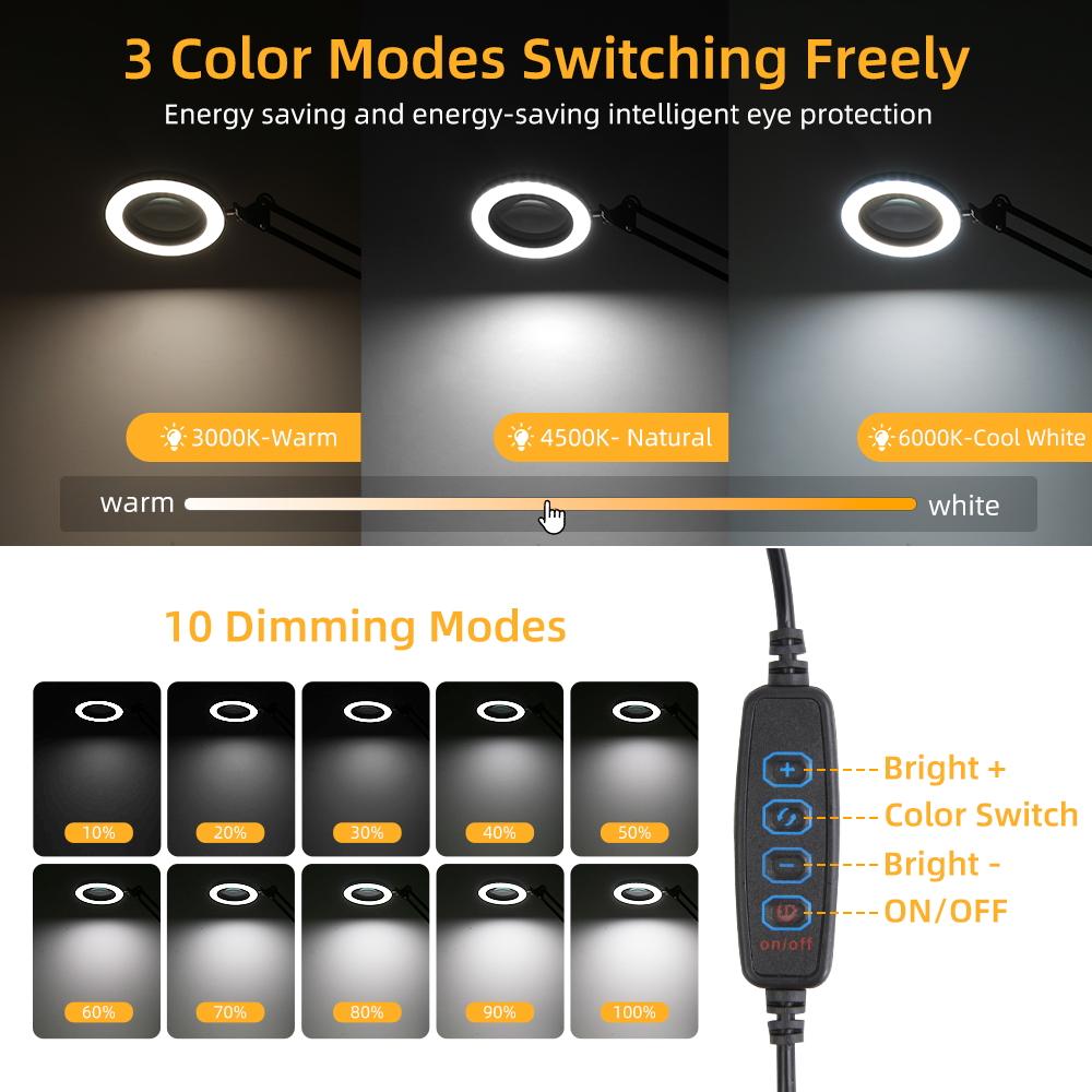 Светодиодная настольная лампа с 10-кратной подсветкой, стеклянная лампа с функцией затемнения и памяти, защитный глаз для чтения, косметический ремонтный светильник