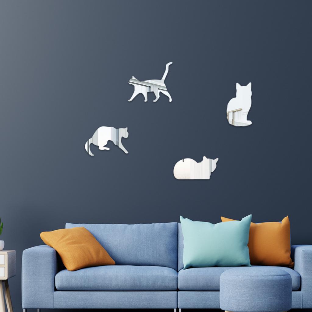 Четыре кота акриловые наклейки на зеркало стены детская комната спальня гостиная фон самоклеящиеся наклейки для декора