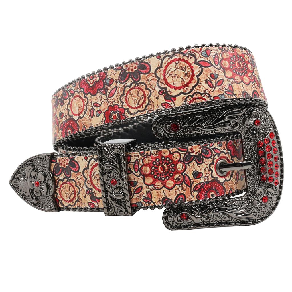 Оригинальный роскошный красный узор со стразами, напечатанный ремень, полный дизайна и модный ремень из искусственной кожи