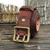 Ретро и старые тенденции персонализированный двойной игольный ремень с медной кнопкой на головке мужской ремень из натуральной кожи из натуральной коровьей кожи для джинсов