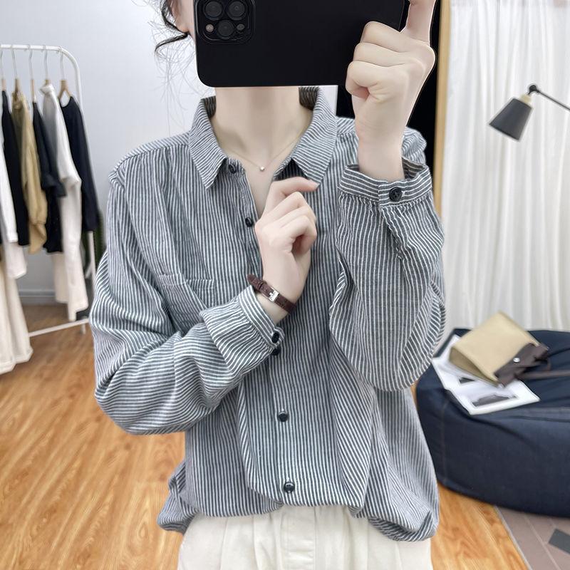 Полосатая рубашка с длинными рукавами для женщин на весну и осень, свободная повседневная универсальная рубашка для поездок на работу, скрывающая недостатки фигуры, утягивающая рубашка