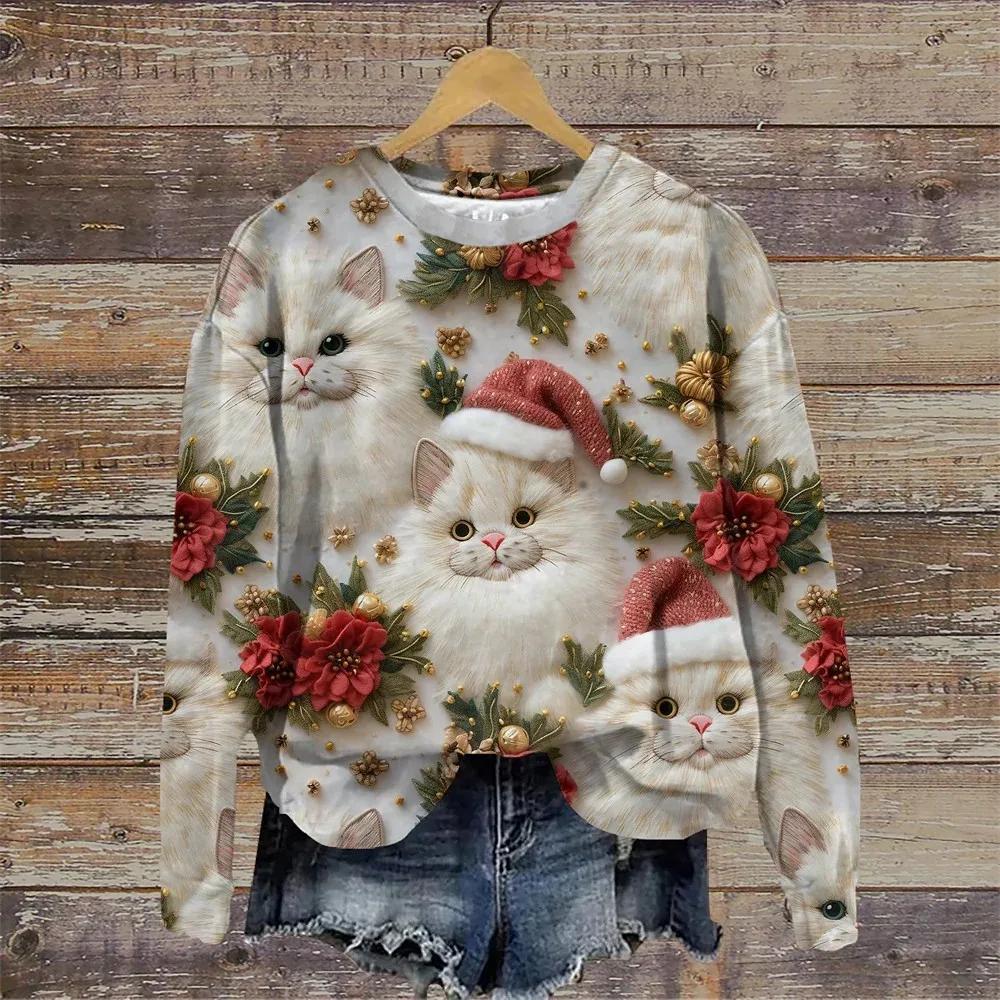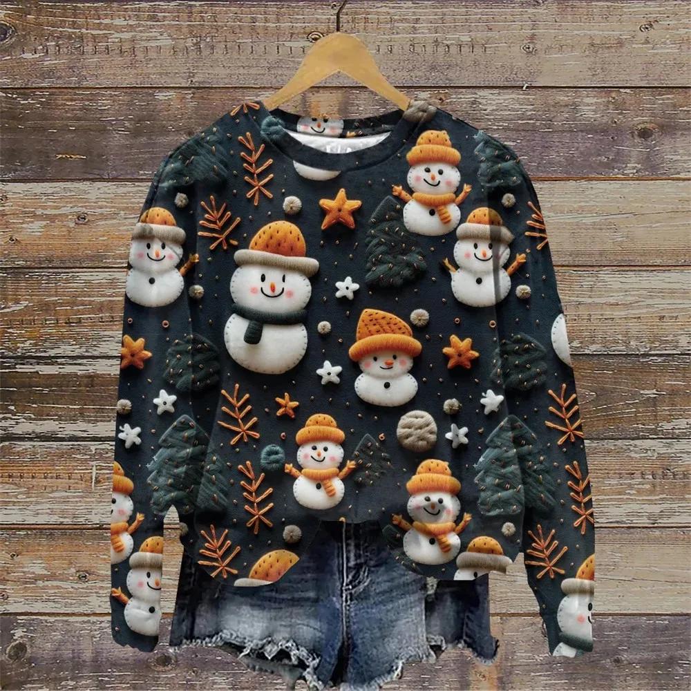 2025 Женская осенняя футболка-пуловер с длинным рукавом y2k Top Graphic Футболки Christmas Seris Festivals O Neck Casual Sport shirt
