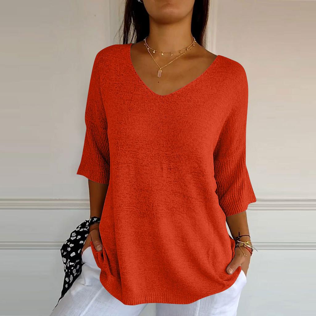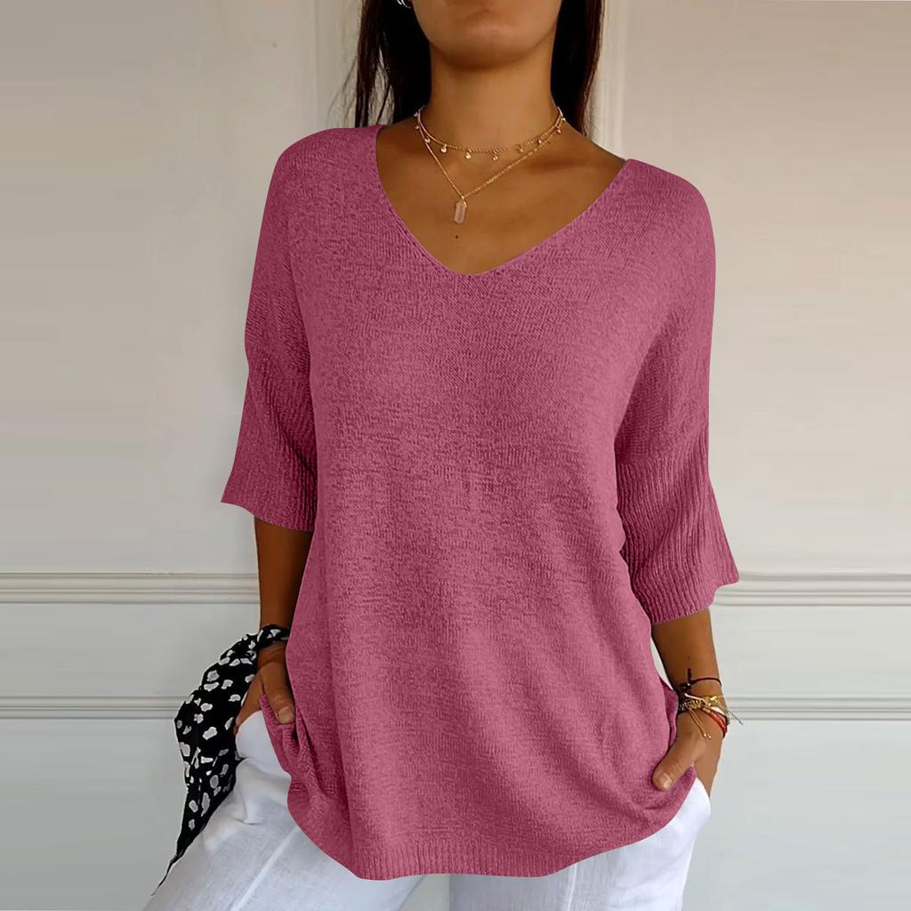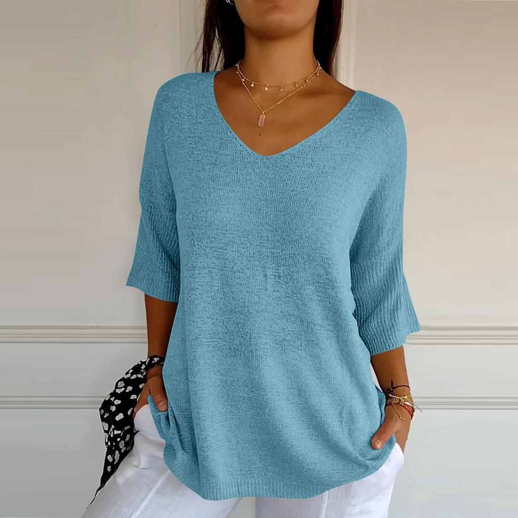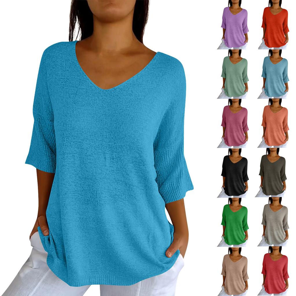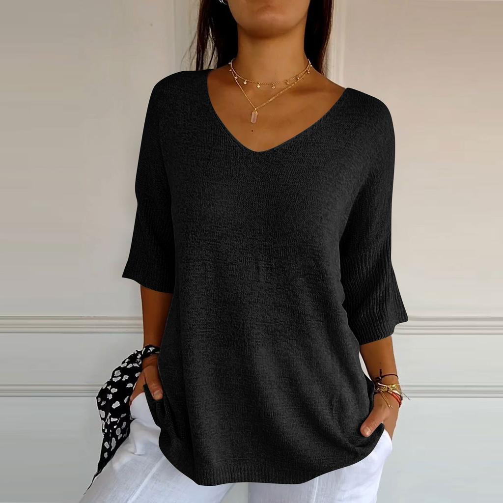 Женский тонкий свитер, рубашка с v-образным вырезом, свободный топ с семью рукавами