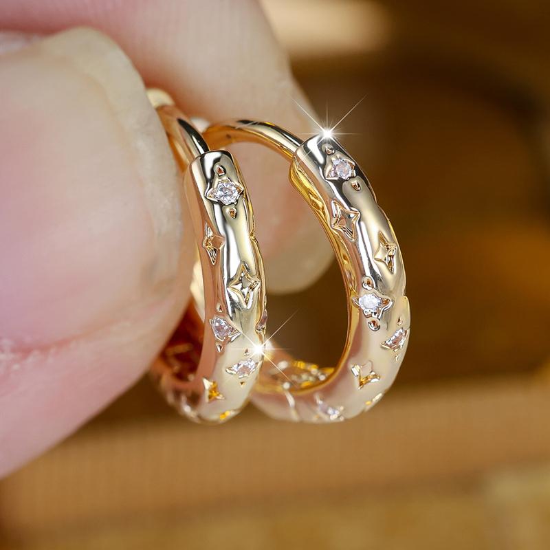 Серьги-кольца со звездами из белого циркония для женщин, круглые серьги золотого цвета, свадебные украшения для помолвки