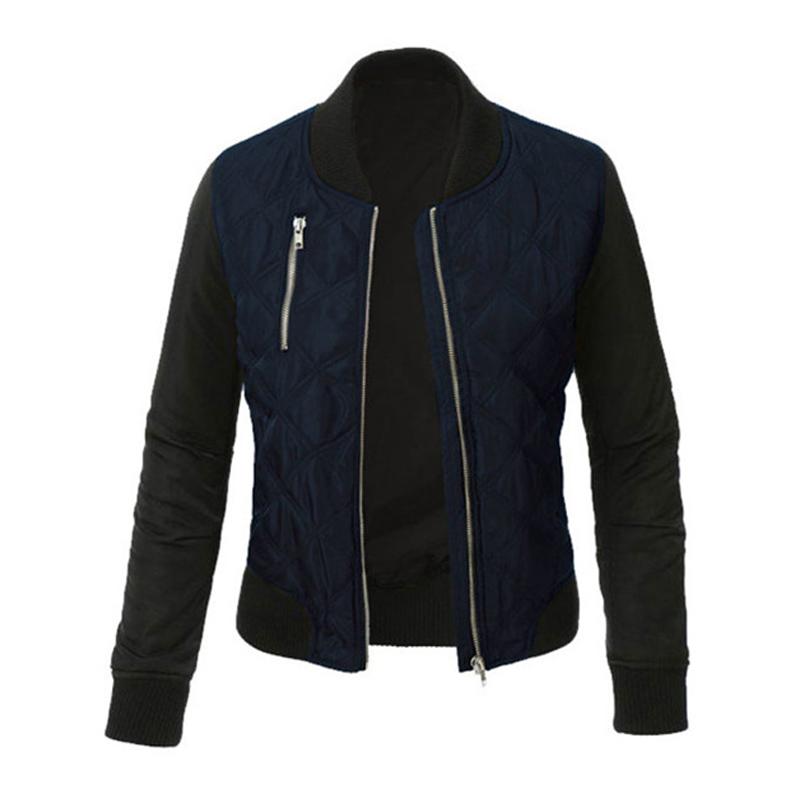 Осень Зима Повседневная Мода Однотонная Женская Куртка Круглый Вырез Молния Стеганая Куртка-Бомбер 2021 Новые Женские Пальто