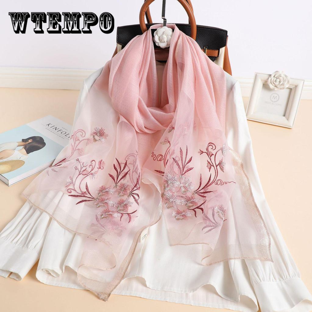 Элегантный шарф из шелка Mulberry - роскошная смесь, изысканный вышитый вручную цветок, сверхлегкий, очень универсальный - идеально подходит для весны и осени