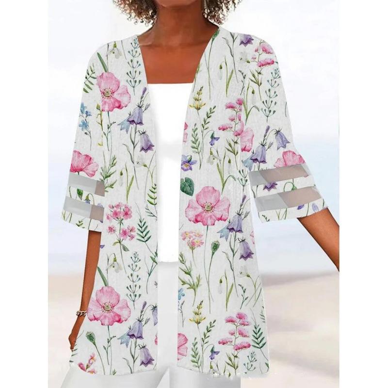 Женский сетчатый кардиган на весну и лето, тонкая куртка средней длины, повседневный кружевной кардиган