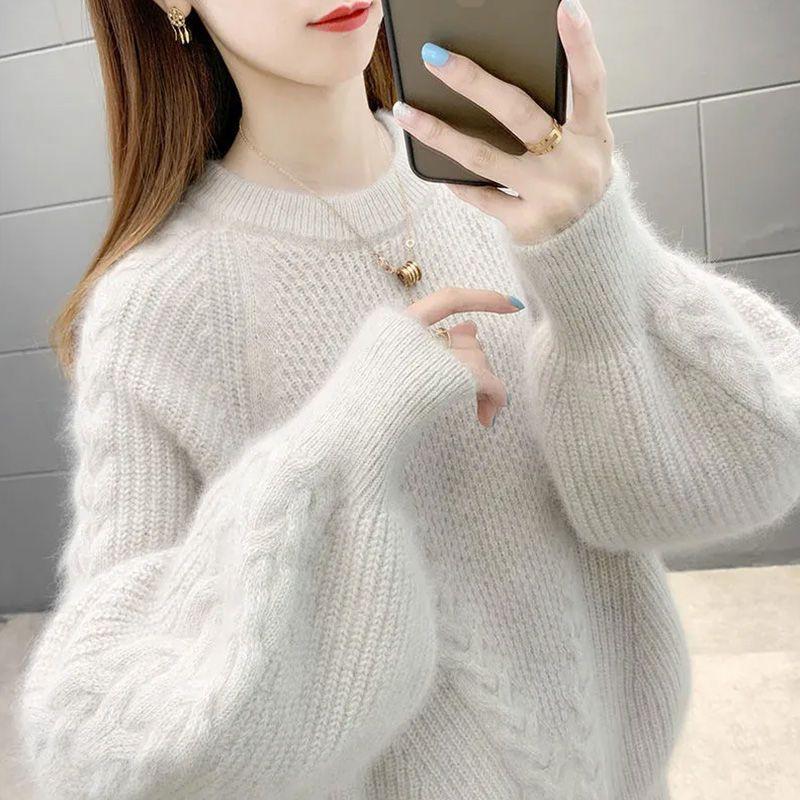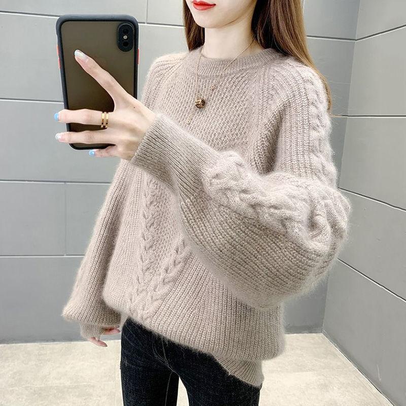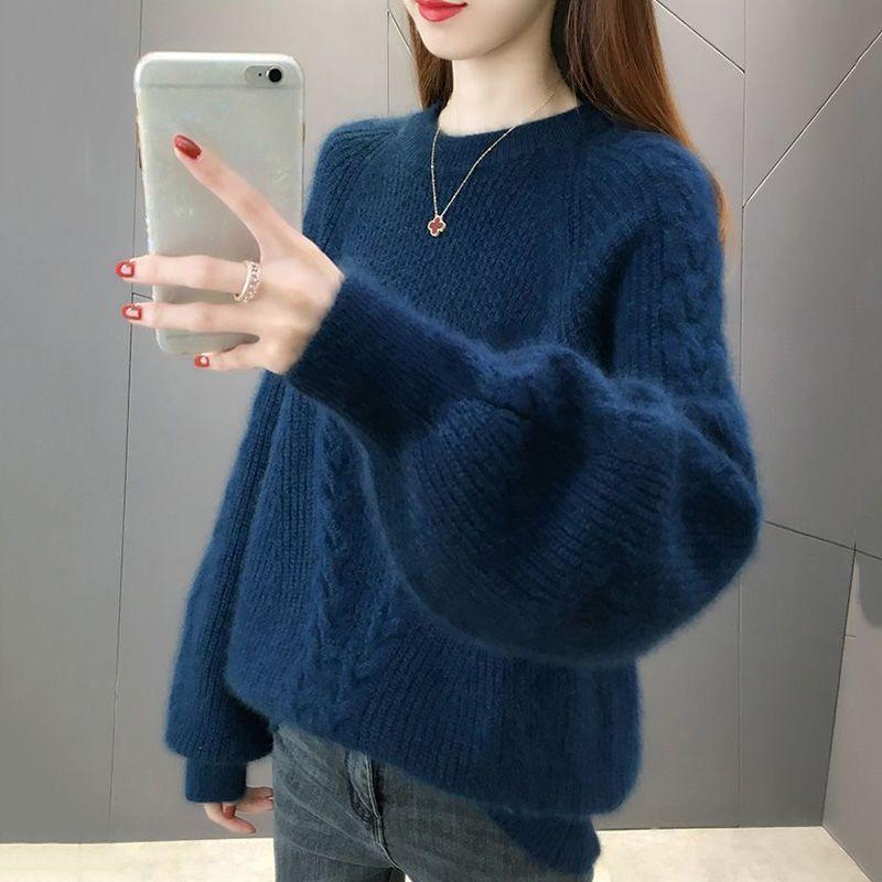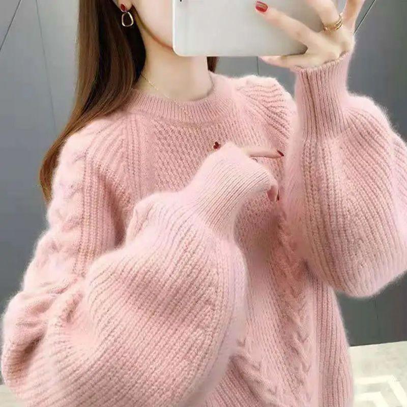 Свитер женский осенне-зимний свободный покрой корейская версия круглый вырез пуловер вязаный базовый свитер с толстым бархатным верхом