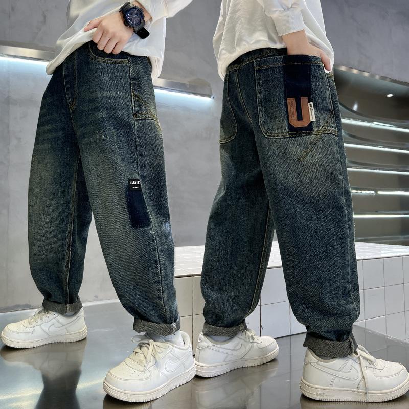 Весна и осень, свободные джинсы для мальчиков, средние и большие детские удобные брюки с буквами — купить товар онлайн с бесплатной доставкой по всему миру!