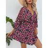 Плюс Размер Женское Летнее Принтовое Платье с Рукавом Seven Point и V-образным Вырезом Модное Платье