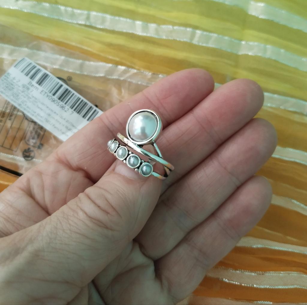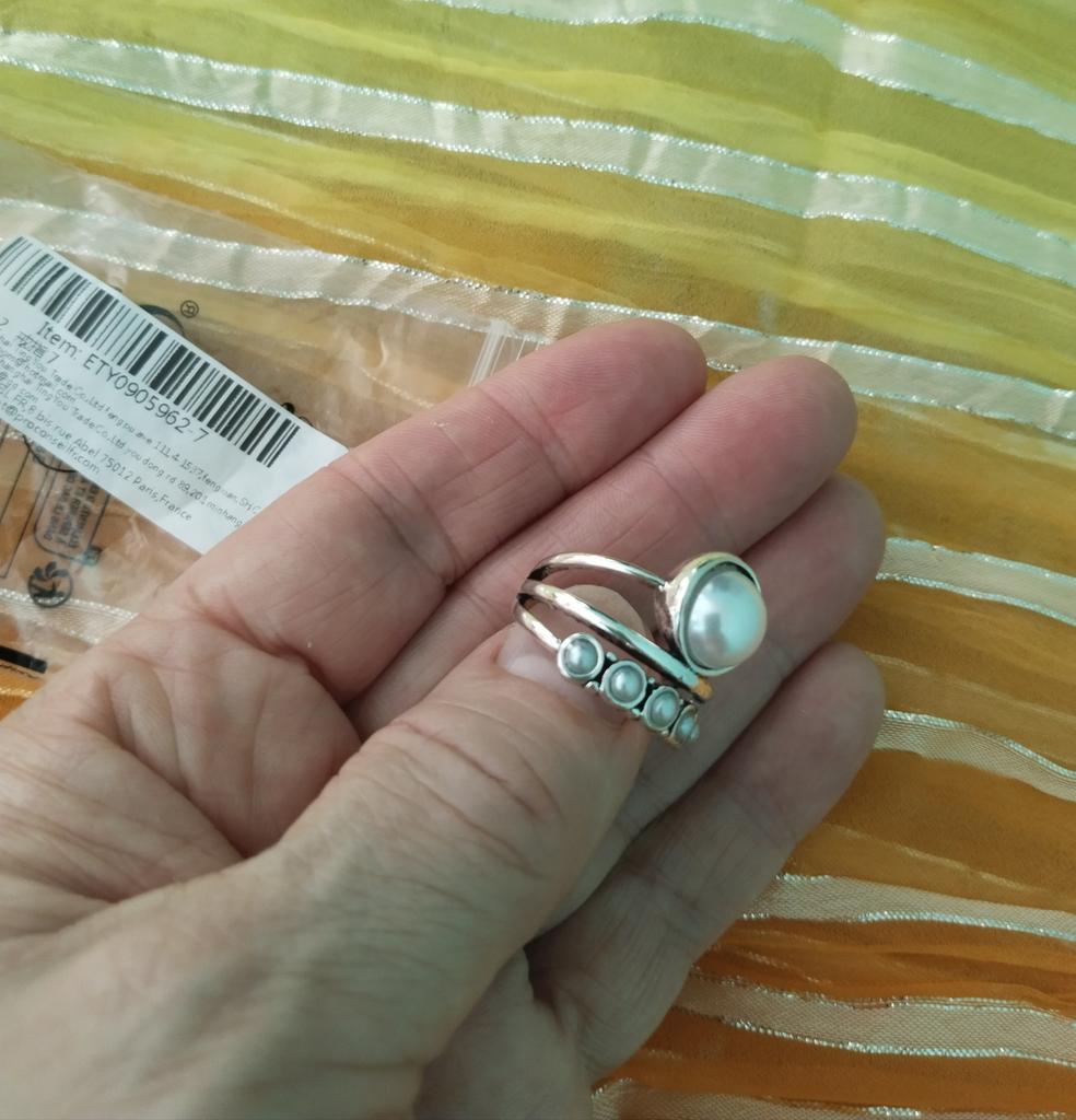 Приятное нежное колечко. 7 размер подошёл на мой 16,5-17 размер. Искусственные жемчужины выглядят как настоящие. Я ,в общем,довольна покупкой,носить буду.