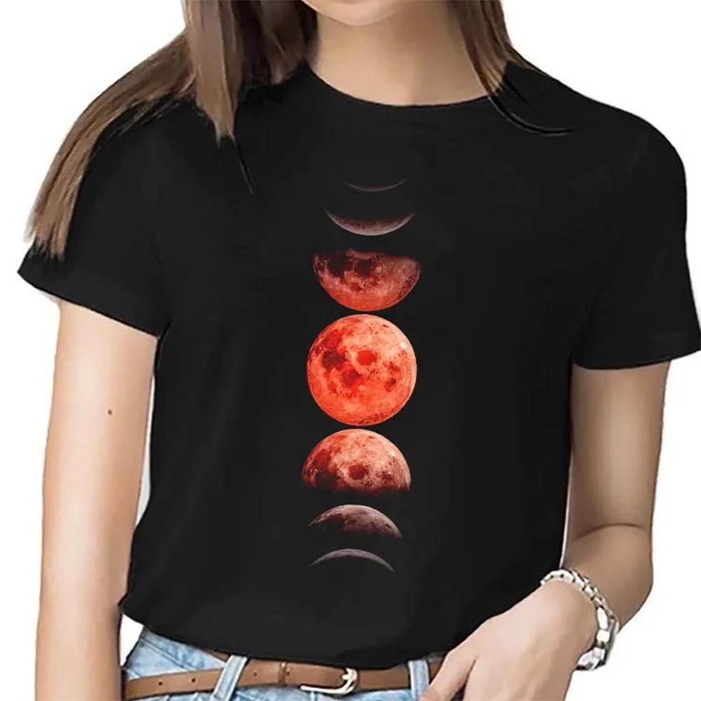 Футболка большого размера New Funny Moon Print, унисекс, белые и черные рубашки, модная футболка с круглым вырезом и коротким рукавом, летние футболки