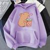 Толстовка с капюшоном Kawaii Bubble Tea Capybara унисекс/унисекс эстетическая графика смешные толстовки унисекс осень-зима Harajuku пуловеры толстовки