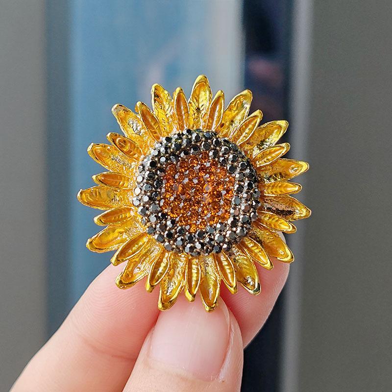 Оригинальная брошь-подсолнух с бриллиантами, брошь-цветок, модная ювелирная бижутерия из сплава высокого класса